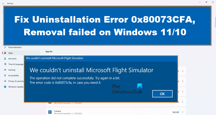 Resolve Uninstallation Error 0x80073CFA, Removal failed on Windows 11/10